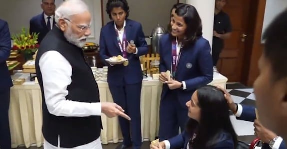 വനിതാ ഏകദിന ലോകകപ്പ് കിരീടം നേടിയ ഇന്ത്യൻ ടീമിനൊപ്പം പ്രധാനമന്ത്രിയുടെ ഔദ്യോഗിക വസതിയിലെ വിരുന്നിൽ പങ്കെടുത്ത് പ്രതിക റാവൽ. ലോകകപ്പ് പോരാട്ടത്തിനിടെ പരുക്കേറ്റ് ടീമിനു പുറത്തായ പ്രതികയെയും ബിസിസിഐ പ്രധാനമന്ത്രിയുടെ വിരുന്നിലേക്കുള്ള സംഘത്തിൽ ഉൾപ്പെടുത്തുകയായിരുന്നു.